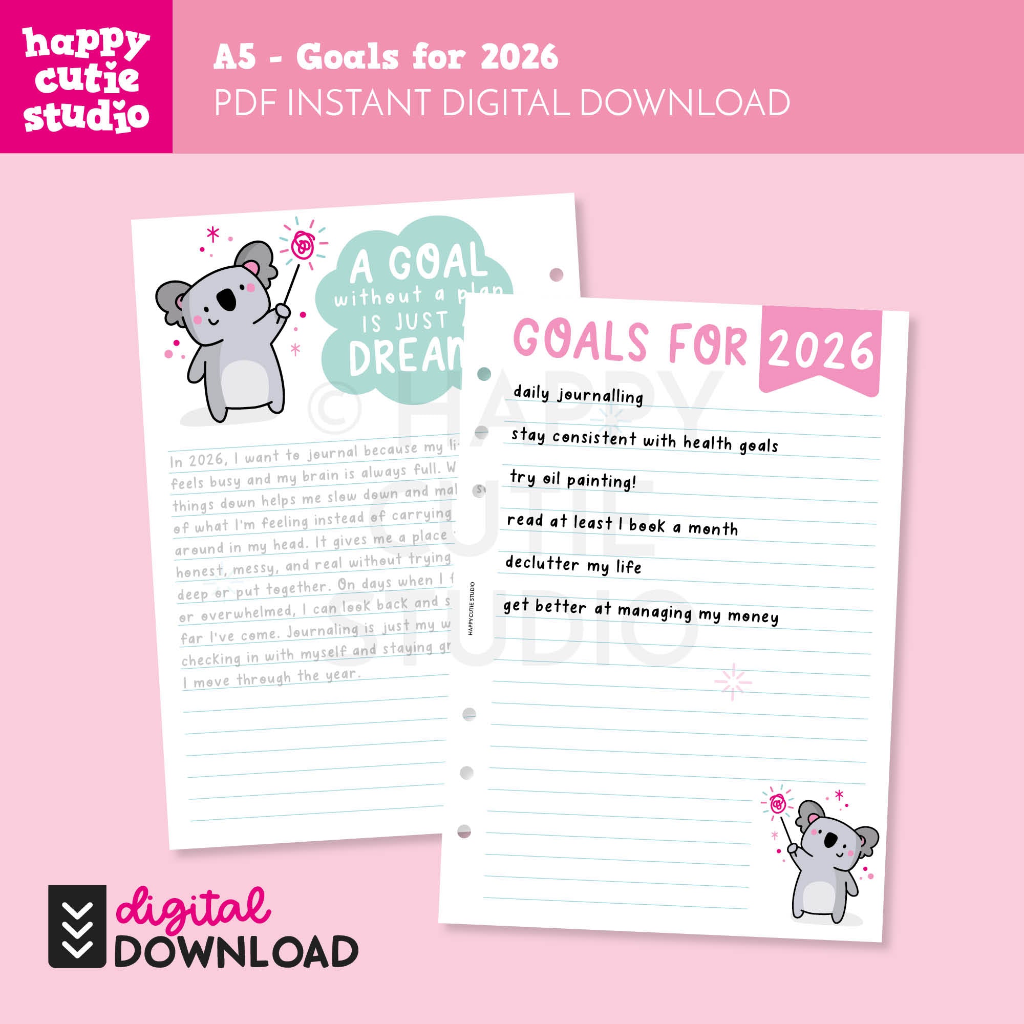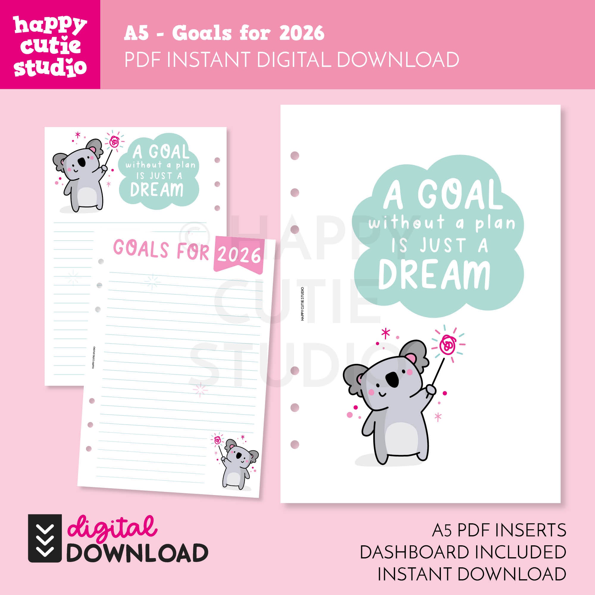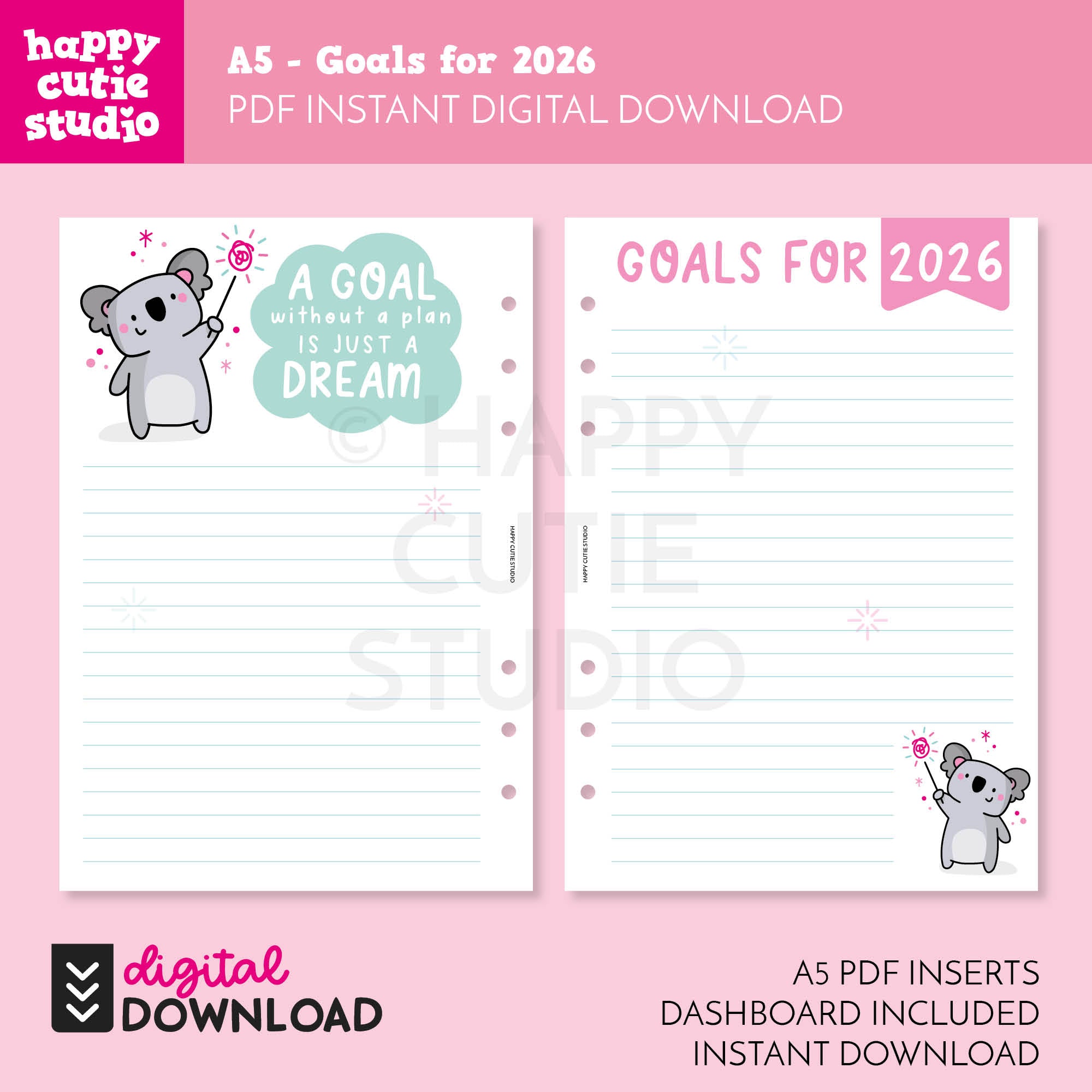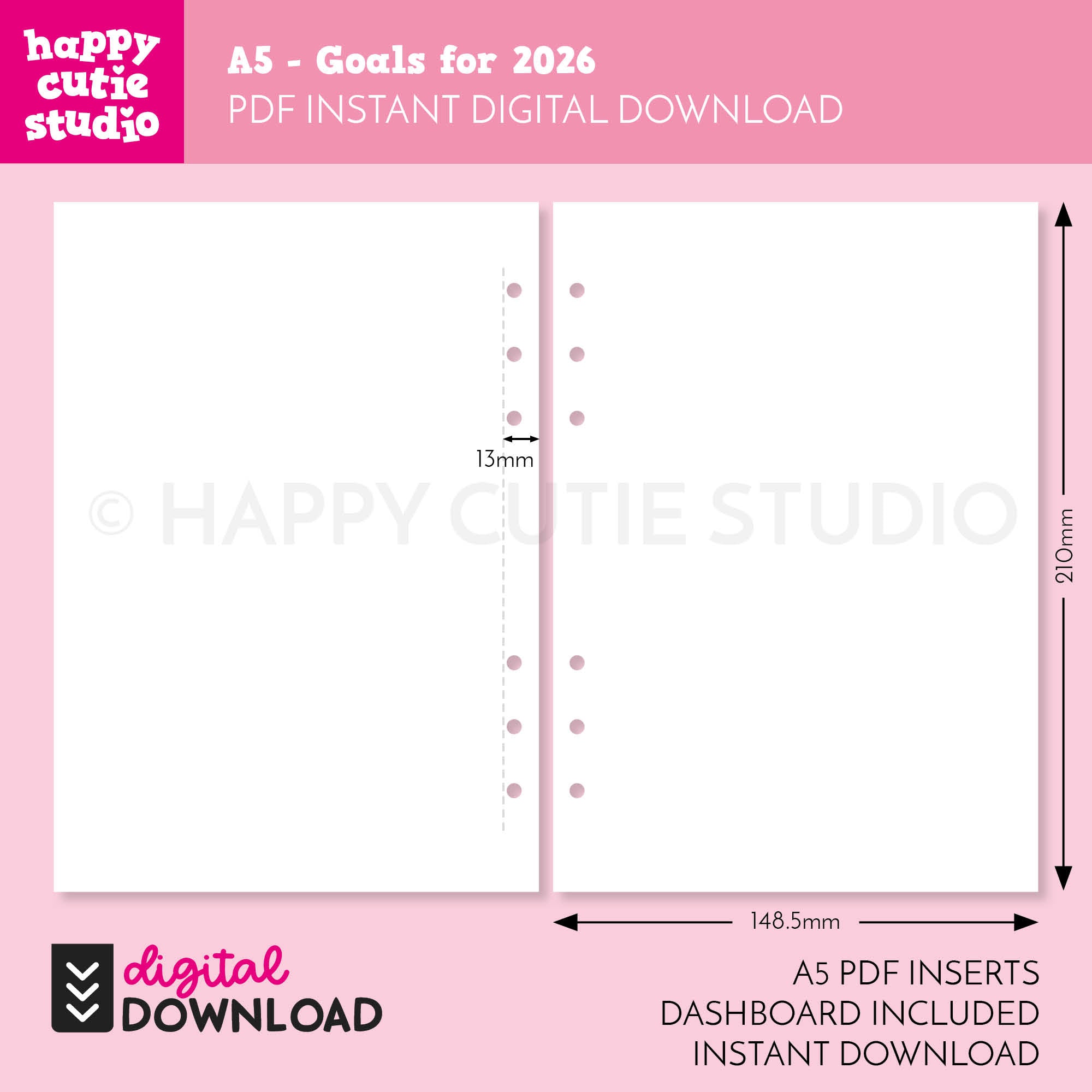 DIGITAL DOWNLOAD - 2026 Goals A5 Printable Planner Inserts - PDF