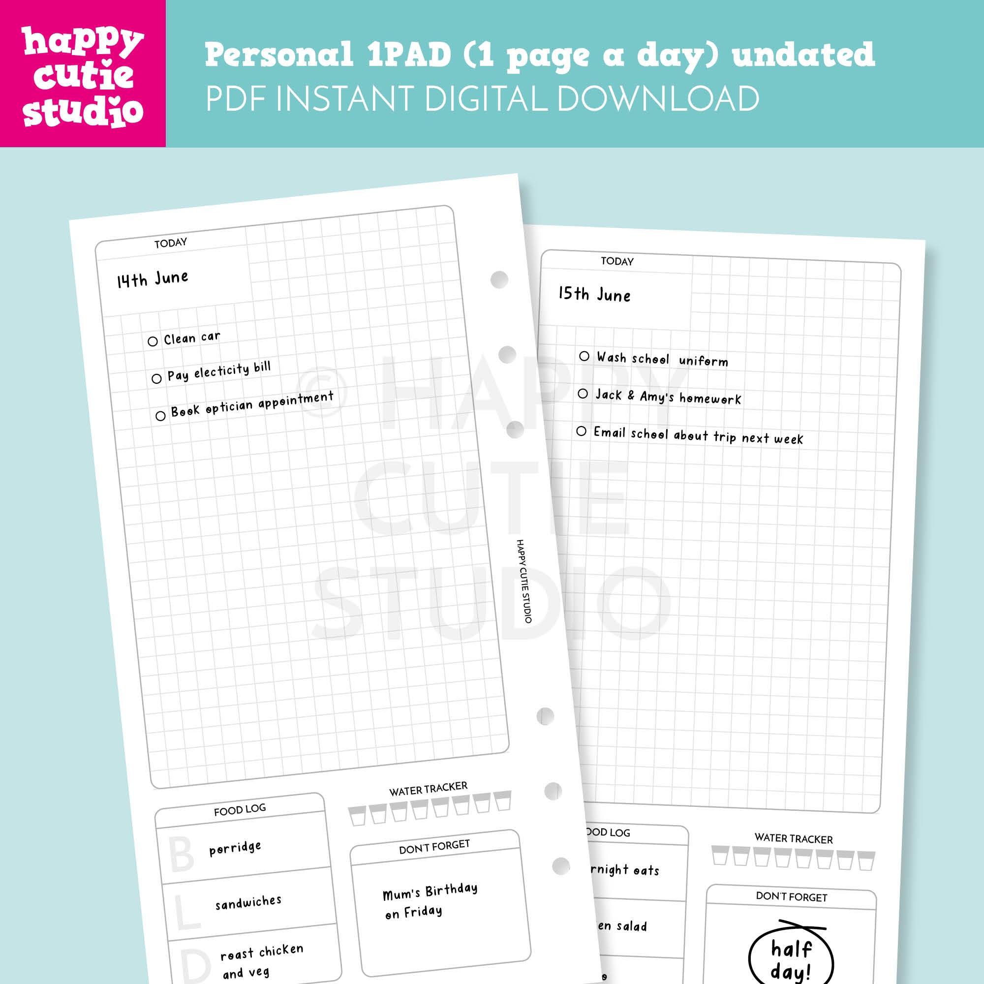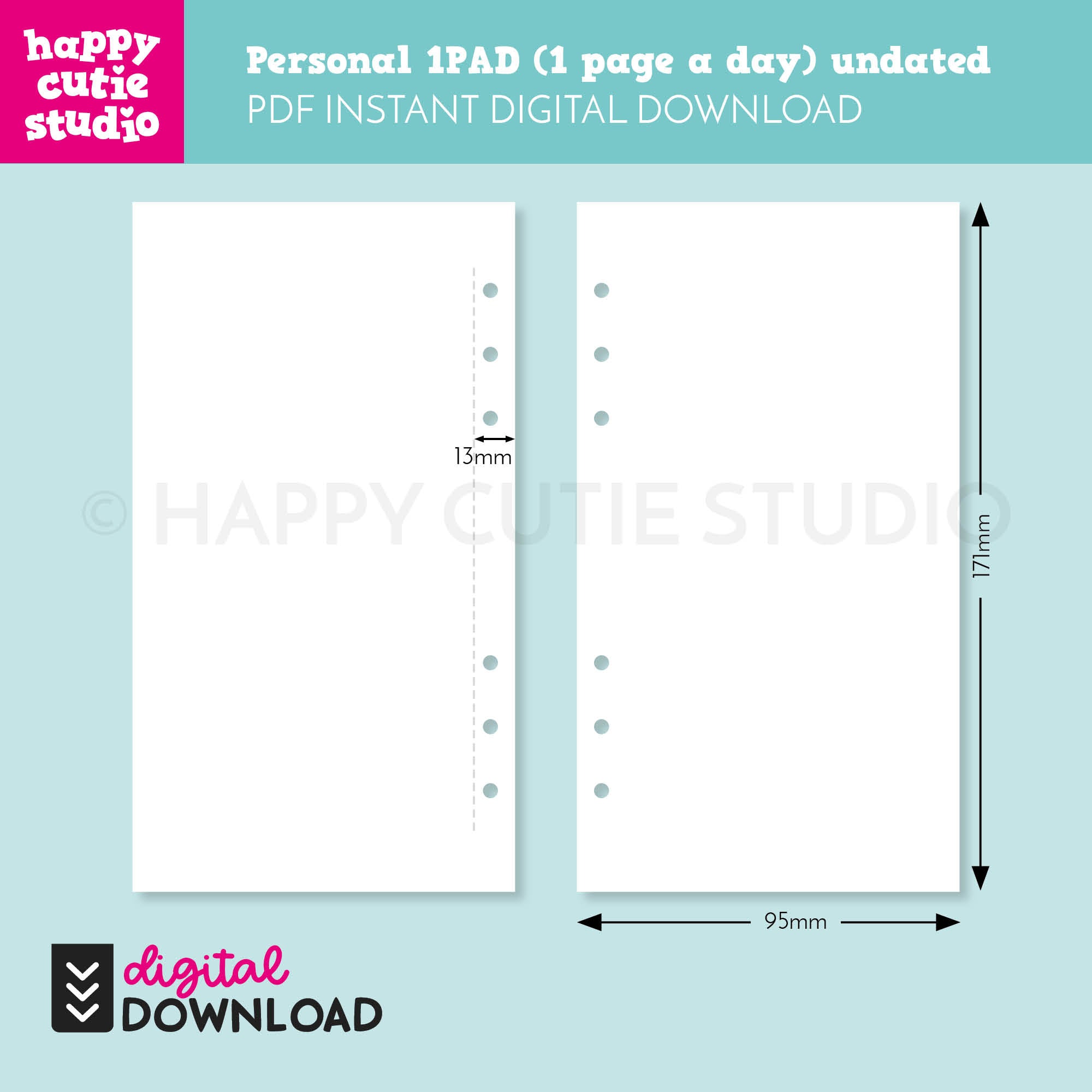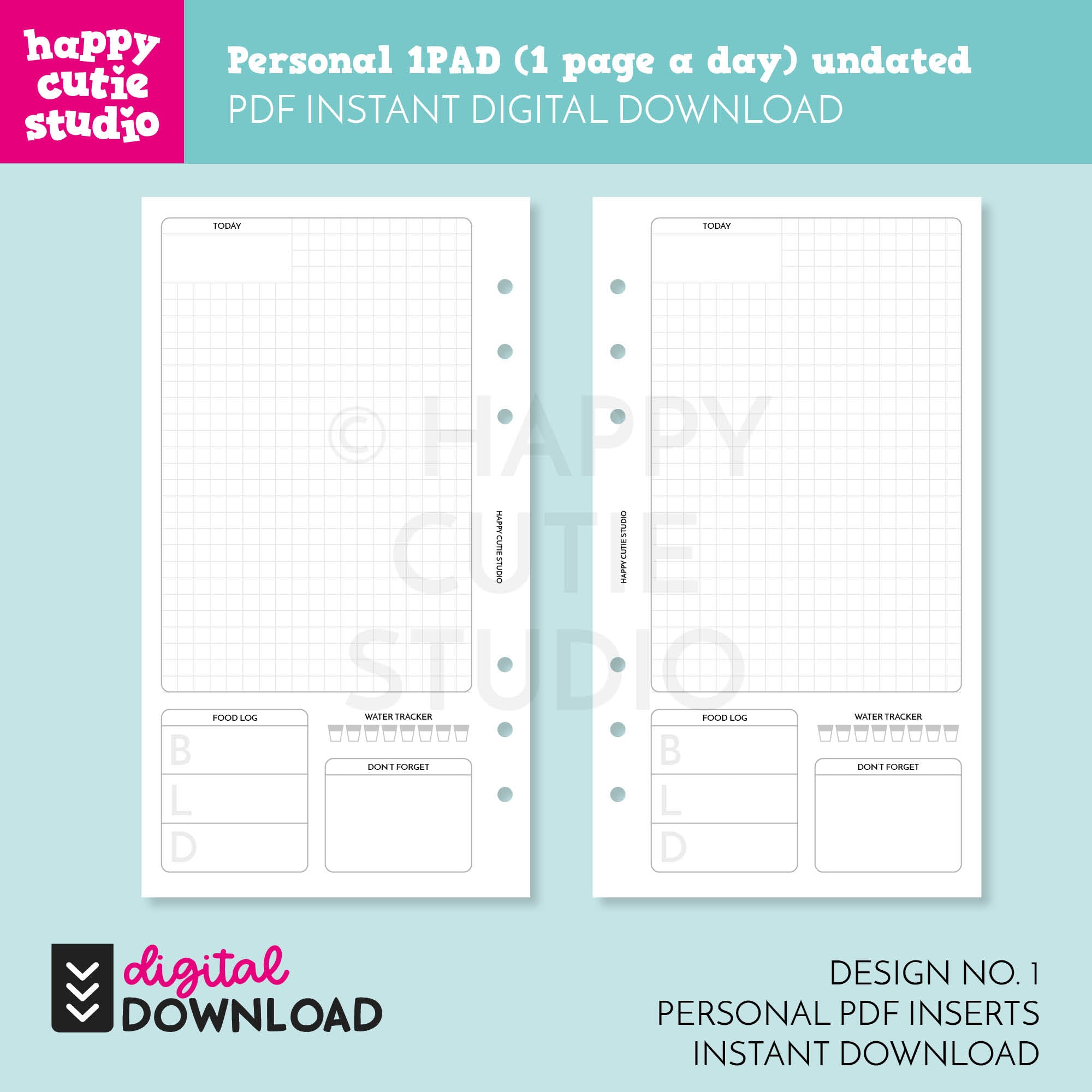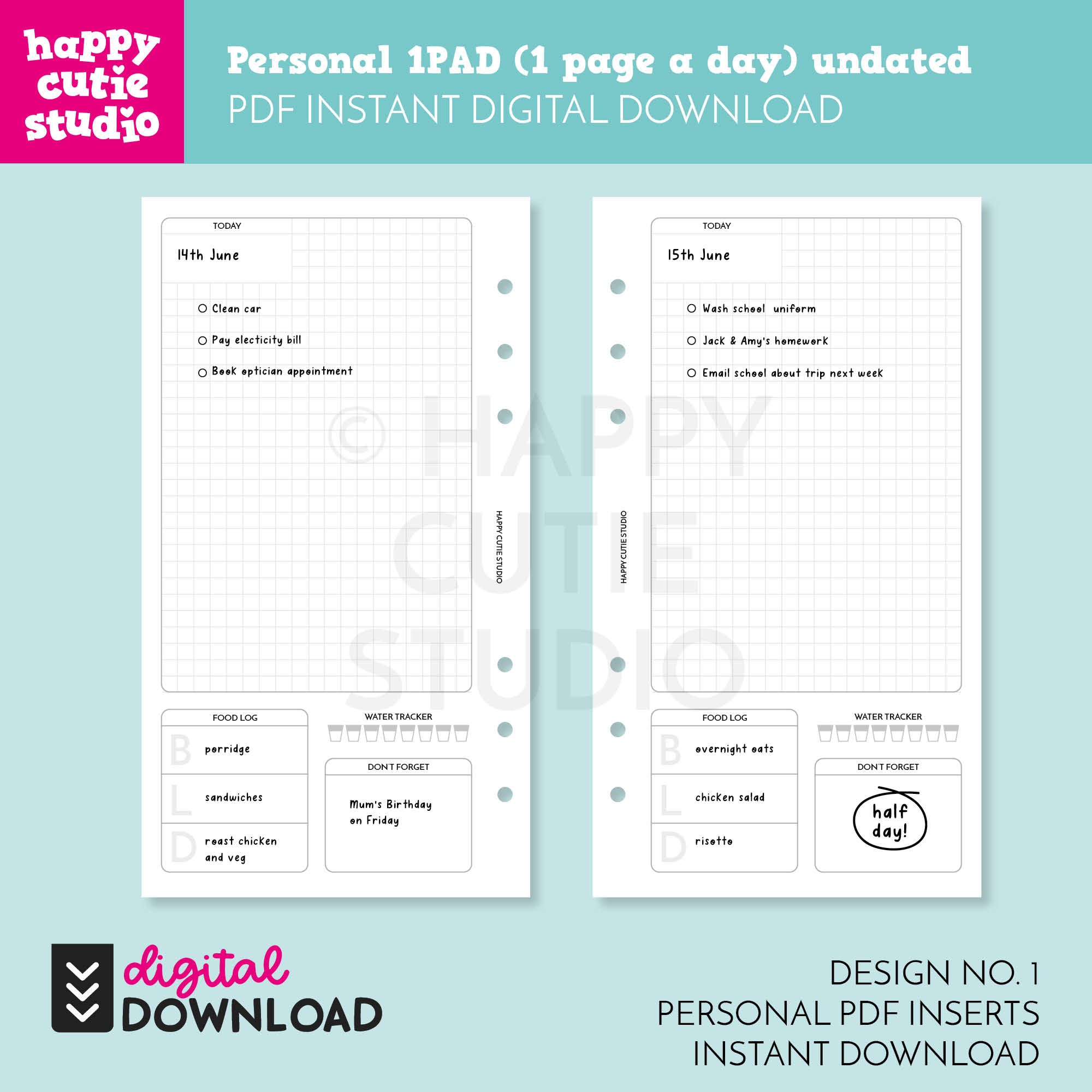 DIGITAL DOWNLOAD - 1P2P - Design No. 1 - Undated Daily Personal Printable Planner Inserts / PDF