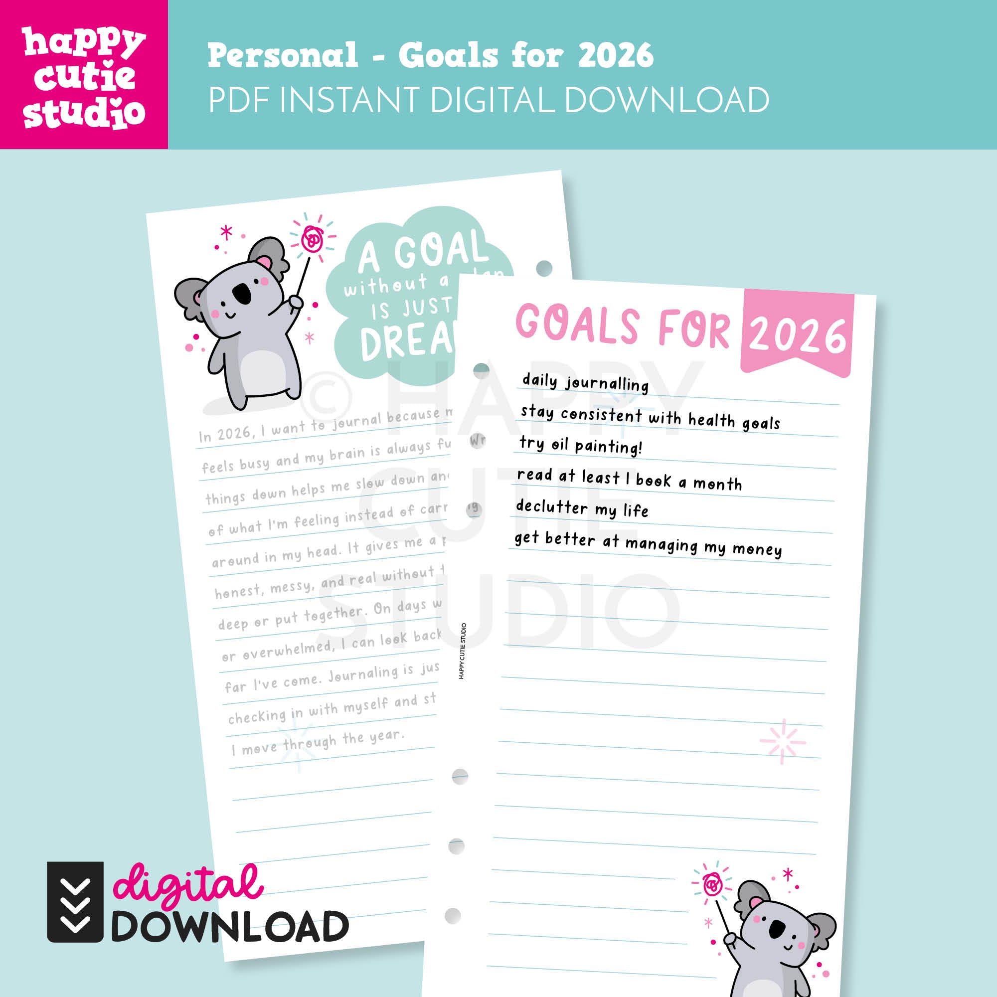 DIGITAL DOWNLOAD - 2026 Goals Personal Printable Planner Inserts - PDF